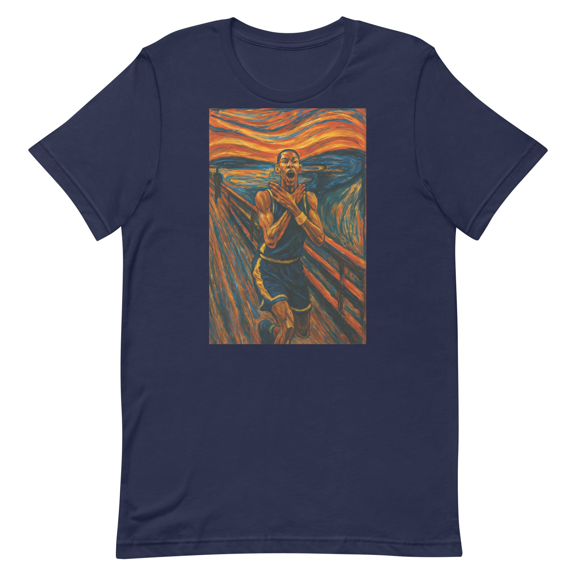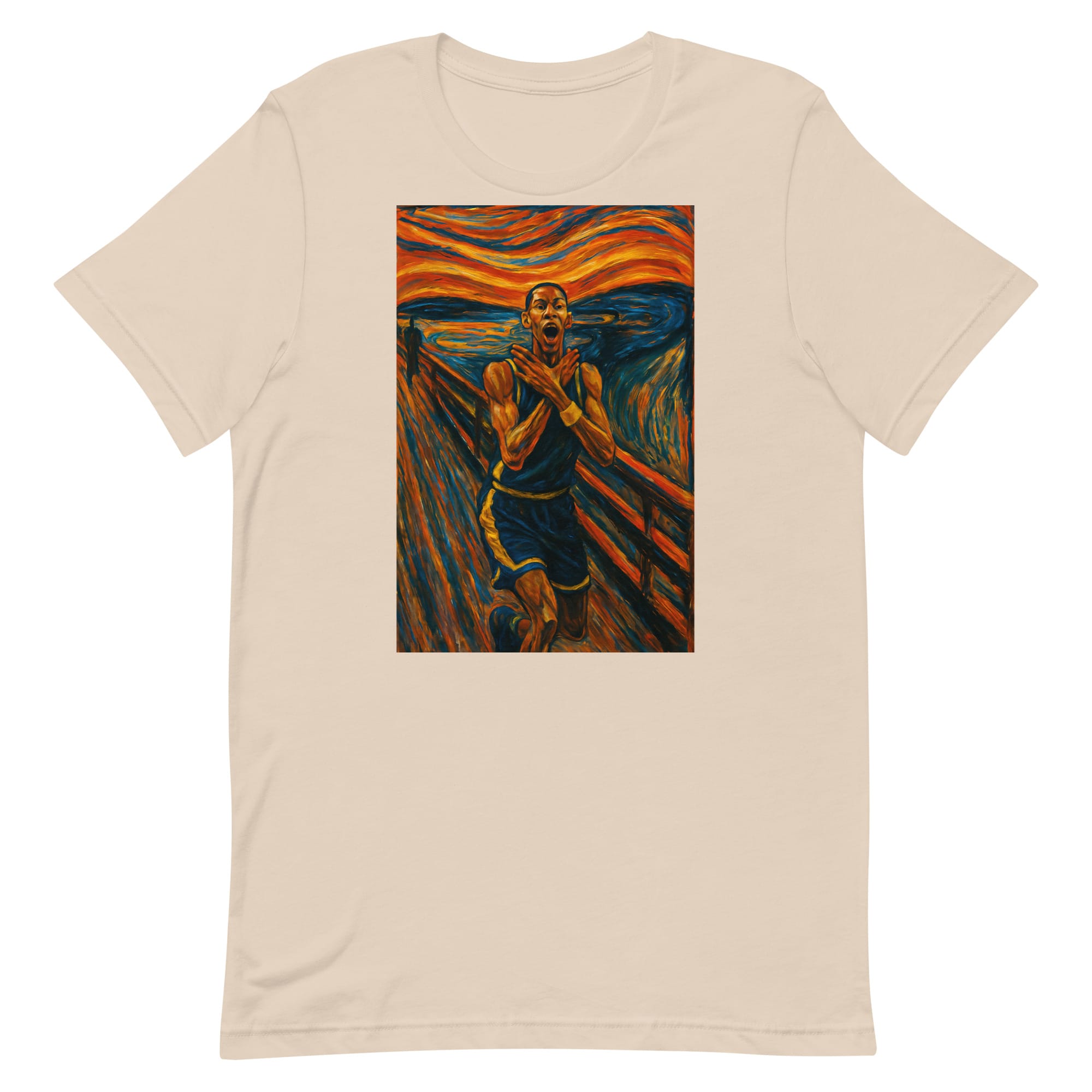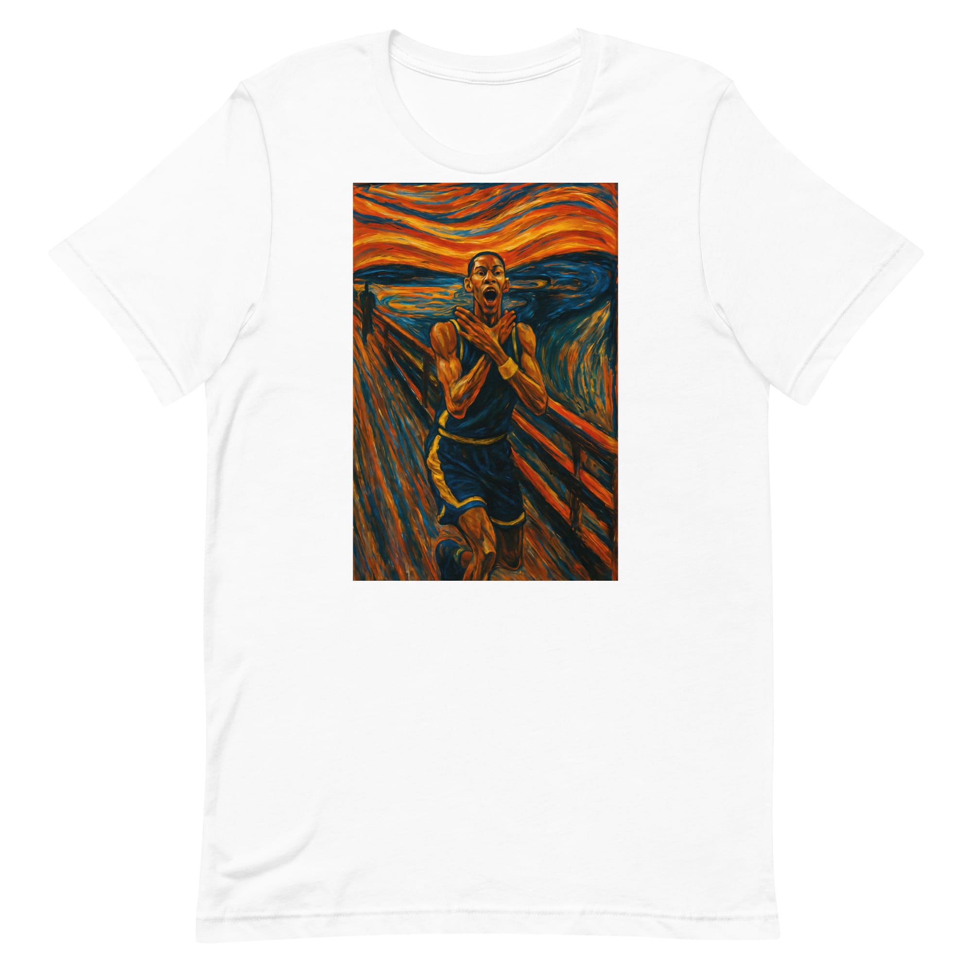 This artwork blends sports culture with fine-art influence by leaning into heightened facial expression and movement. Inspired by classic expressionist techniques, the design focuses on emotion rather than realism. The result is a parody-driven graphic that feels familiar, yet clearly reimagined.