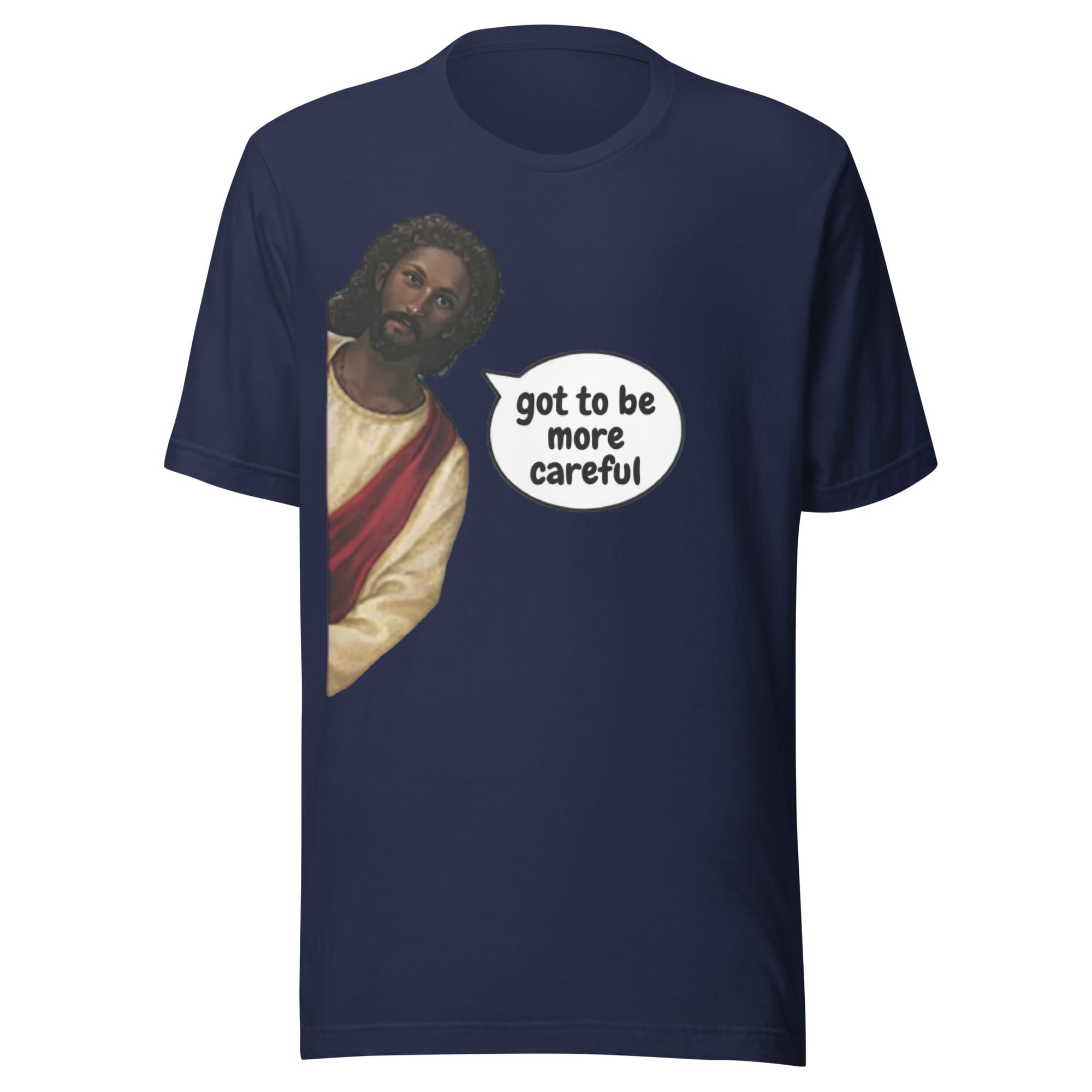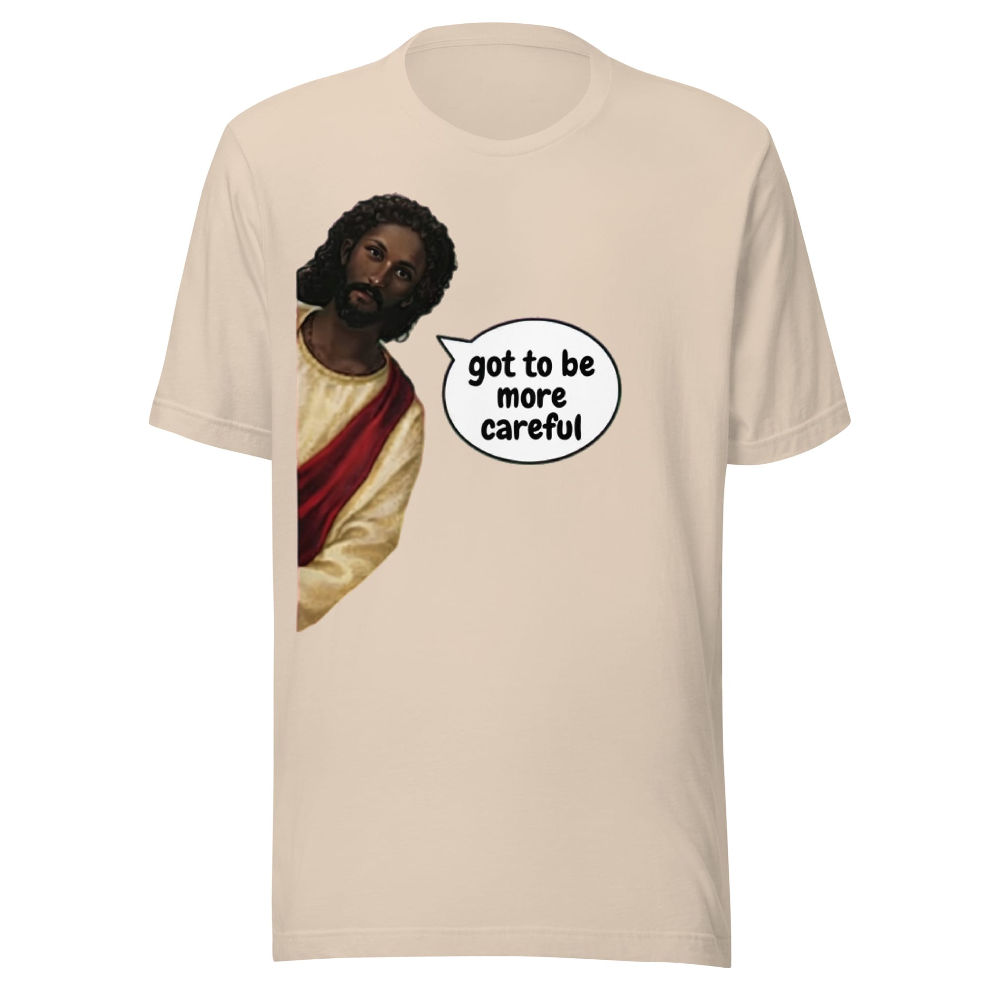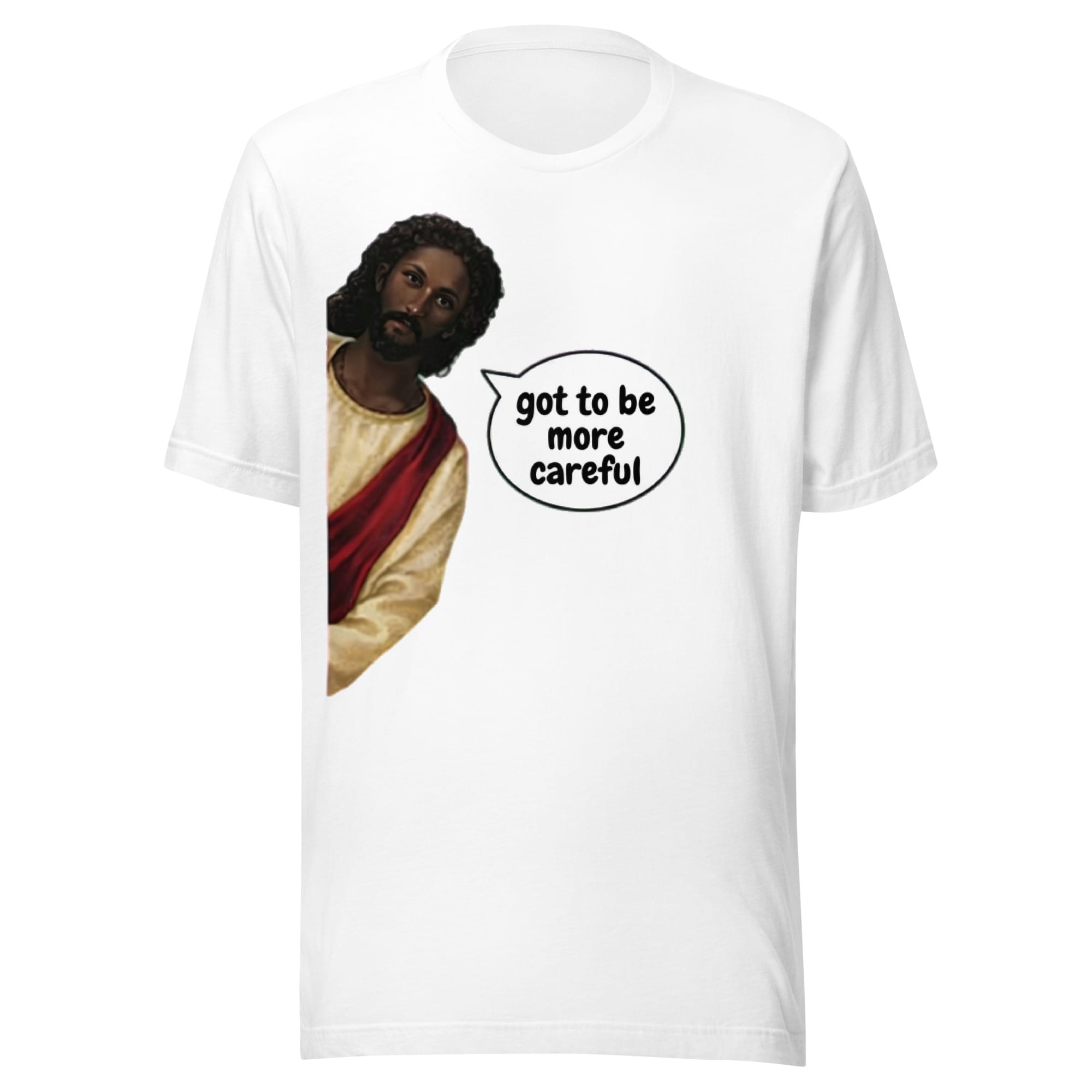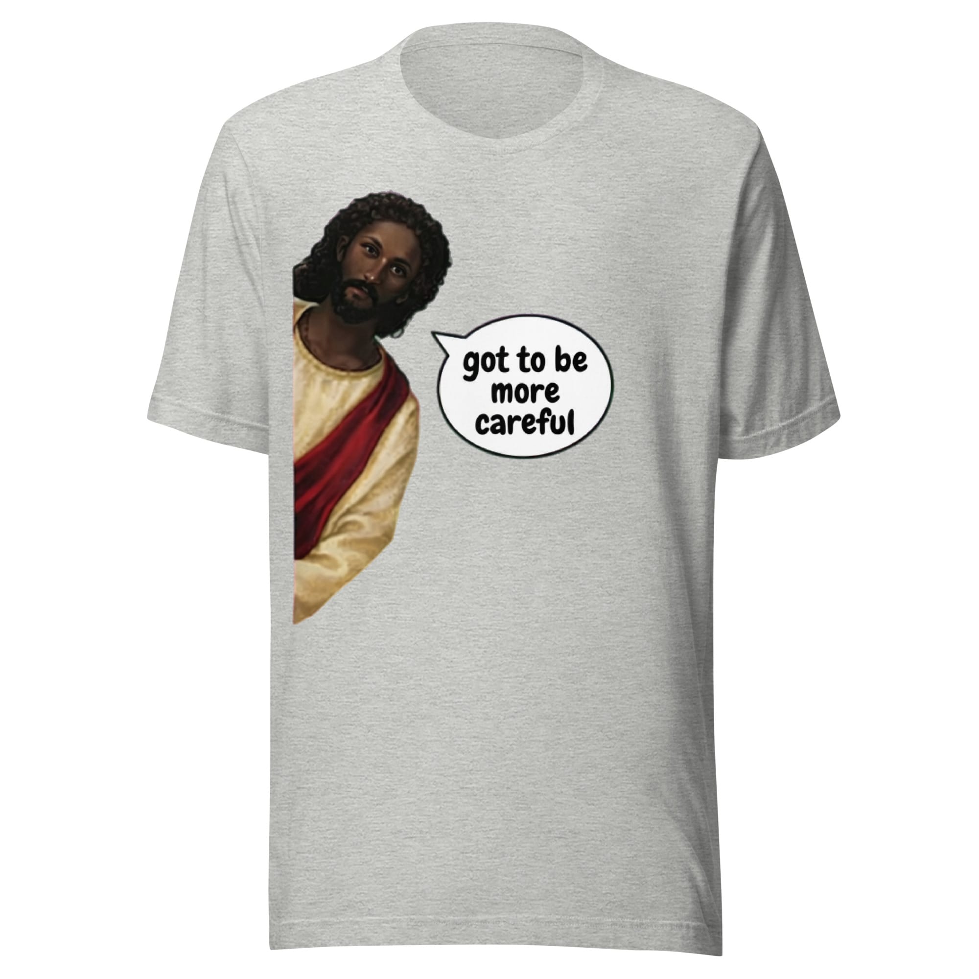 Some shirts say everything without saying too much — and this one nails it perfectly. The Got To Be More Careful Funny Religious Graphic Tee from Gila Prints is a bold, head-turning design that blends classical painted art with laugh-out-loud humor. A richly detailed figure delivers one simple, unforgettable message through a comic speech bubble: “got to be more careful.” As a result, you get a tee that feels both timeless and hilarious all at once.